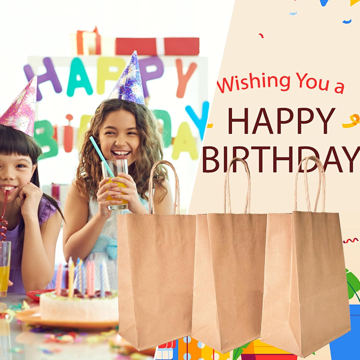 BAG BOX 25 Pack 5.9x3.1x8.25 Inch Brown Gift Bags with Handles,Bulk Kraft Paper Bags for Shopping, Retail, Merchandise, Wedding, Party Favors, Paper Grocery Sacks
