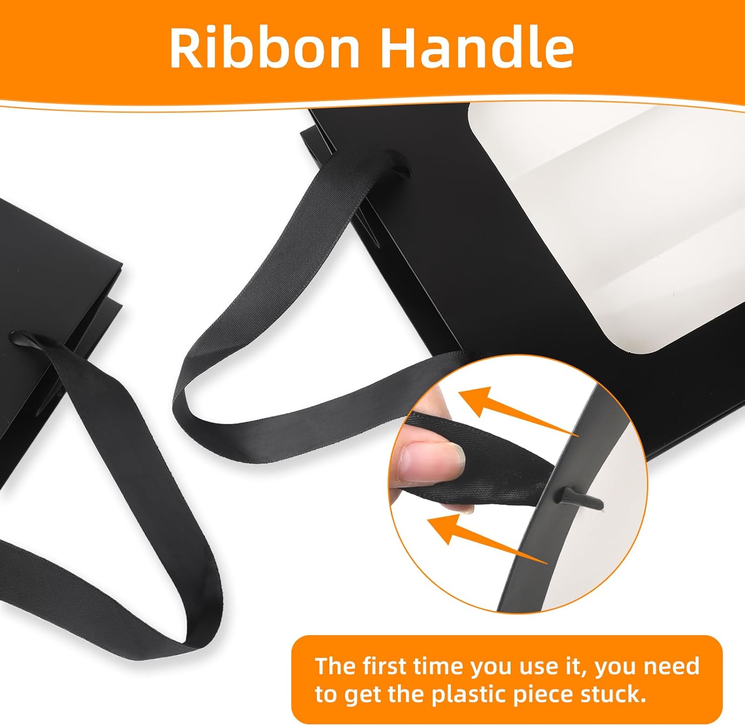 - Comfortabl Ribbon Handles: The broad silk handles provide a comfortable grip, enhancing black kraft bags's luxurious feel. black paper bags's elegant and chic appearance adds a special touch of sophistication to your gifts, making every occasion more memorable.