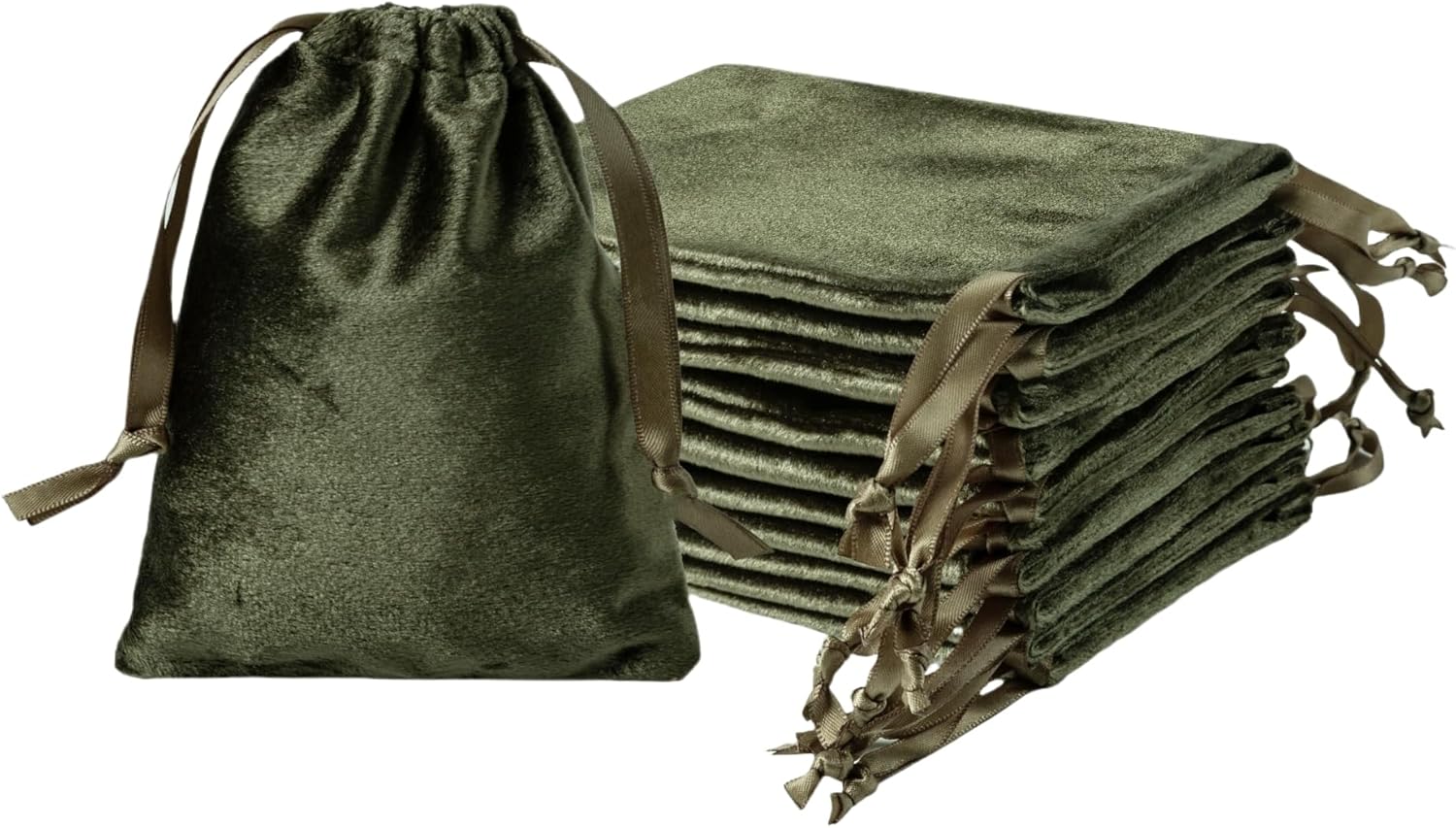 QIANF 12pcs Moss Green Velvet Drawstring Bags 3x4 inches Glossy Small Velvet Cloth Gift Bags Jewelry Pouches for Jewelry Storage Wedding Party Favor Christmas