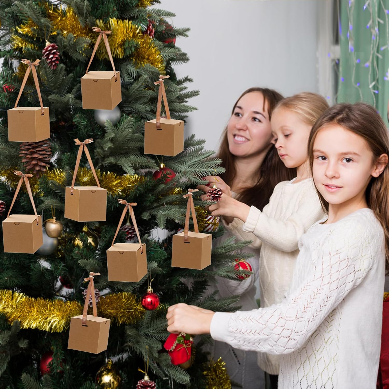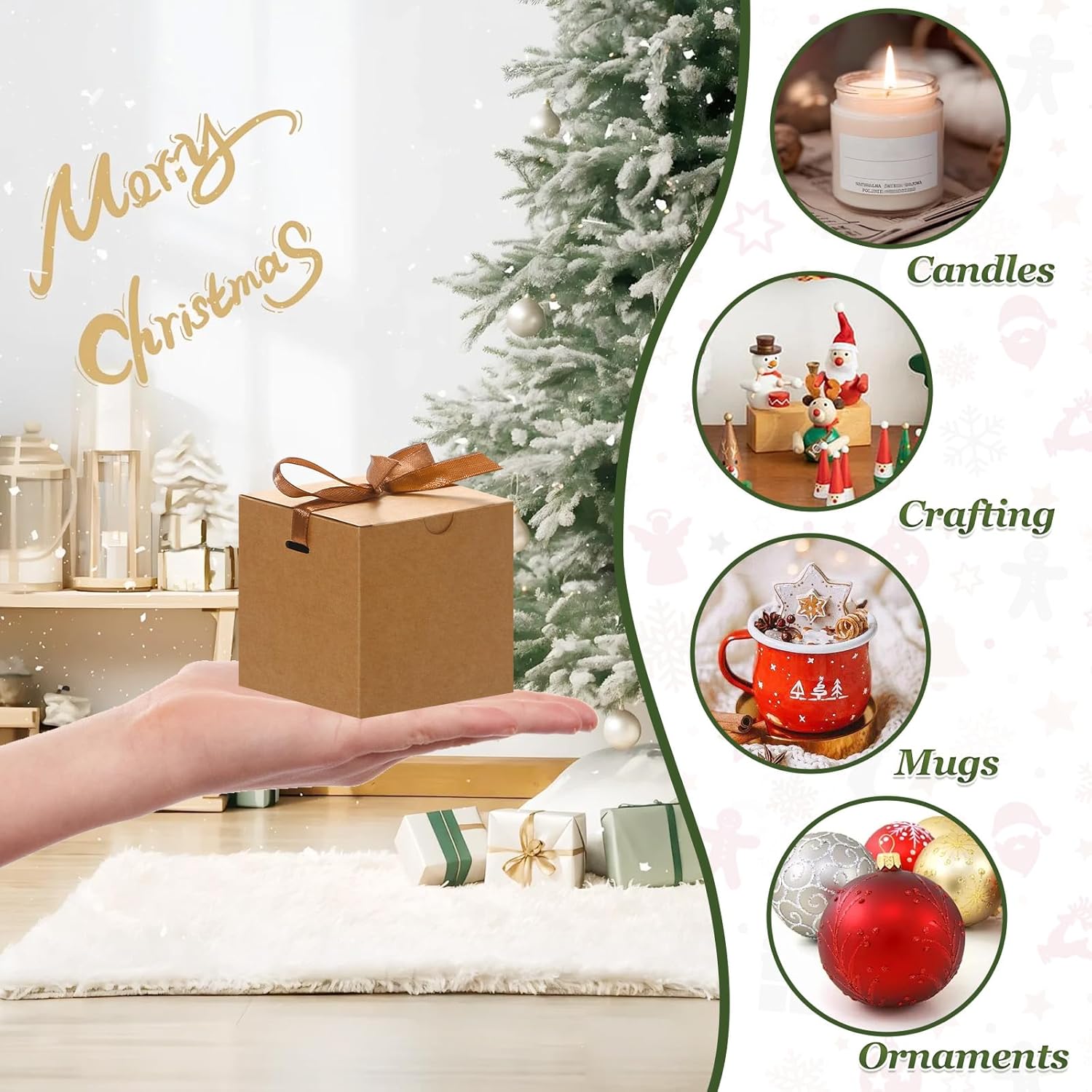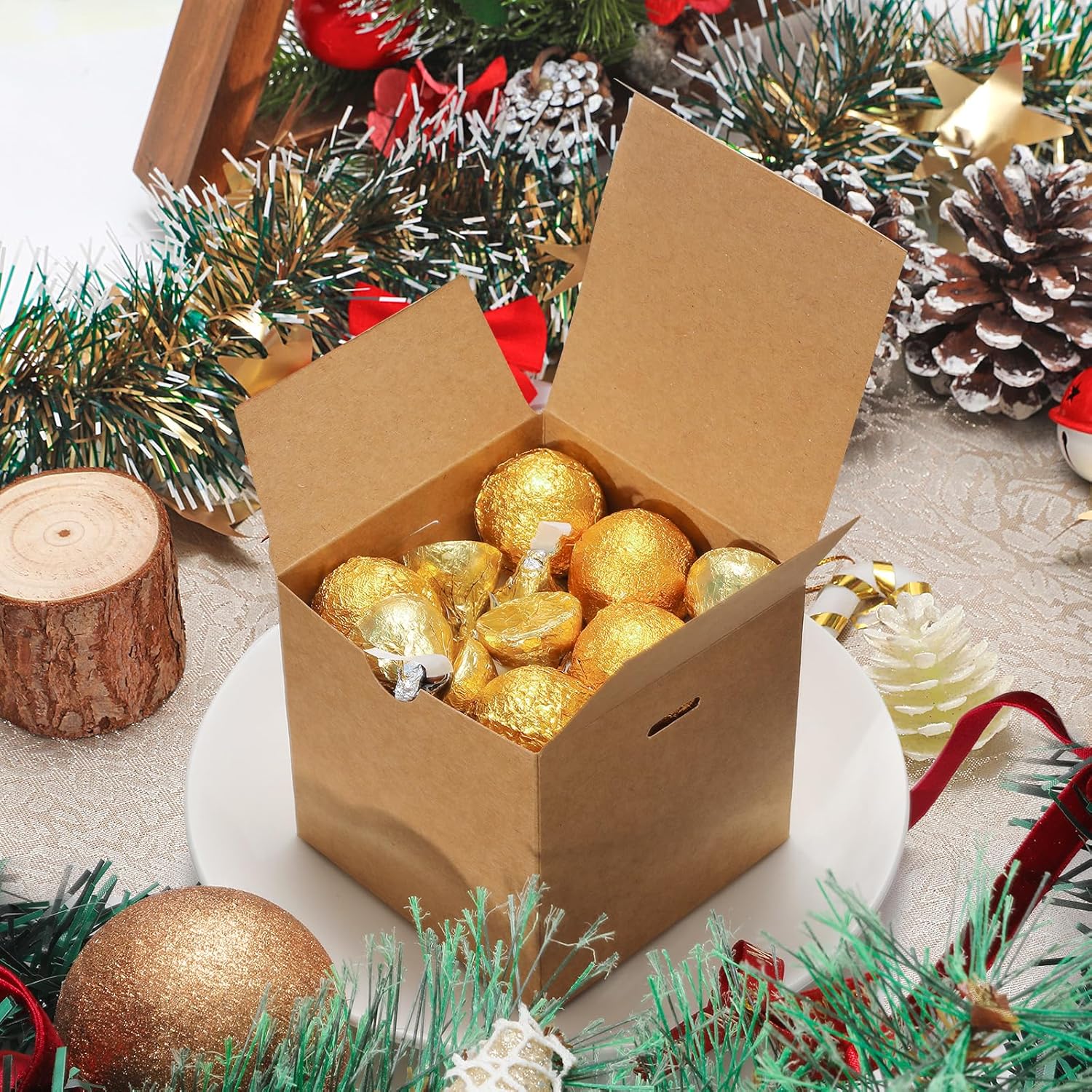 DOYIDE Small Gift Boxes, 60 Pcs 4x4x4 Inch Brown Elegant Paper Box with Ribbons, Party Favor Boxes for Candy Cupcake Christmas Wedding Baby Shower Bridesmaids Birthday