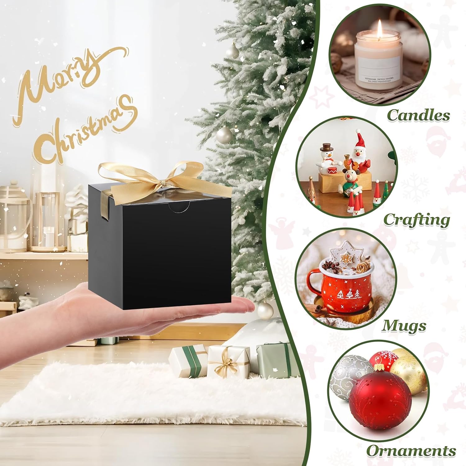 DOYIDE Small Gift Boxes, 20 Pack 5x5x5 Inch Black Elegant Paper Boxes with Ribbons, Crafting, Christmas Gift Box Wedding Party Favor, Cupcake, Candy, Bridesmaids Proposal Box