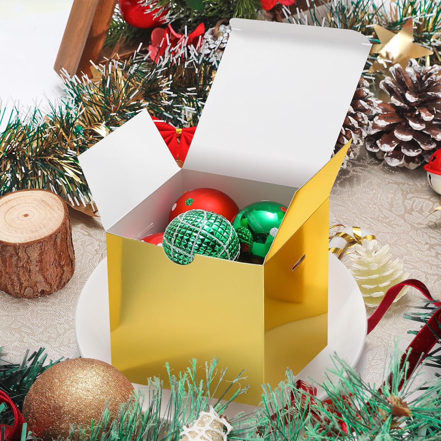 DOYIDE 20 Pack Small Gift Boxes, 6x6x6 Inch Gold Elegant Paper Boxes with Ribbons, Christmas Gift Box Crafting, Wedding Party Favor, Cupcake, Candy, Bridesmaids Proposal Box