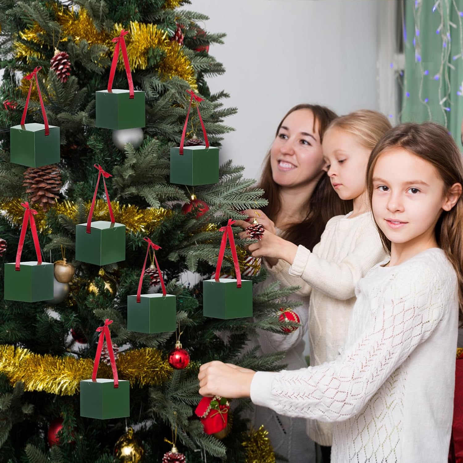 DOYIDE 60 Pcs Small Gift Boxes, 3x3x3 inches Kraft Paper Gift Box with Ribbons, Green Candy Boxes for Christmas Wedding Favors Baby Shower Bridal Shower Birthday Party