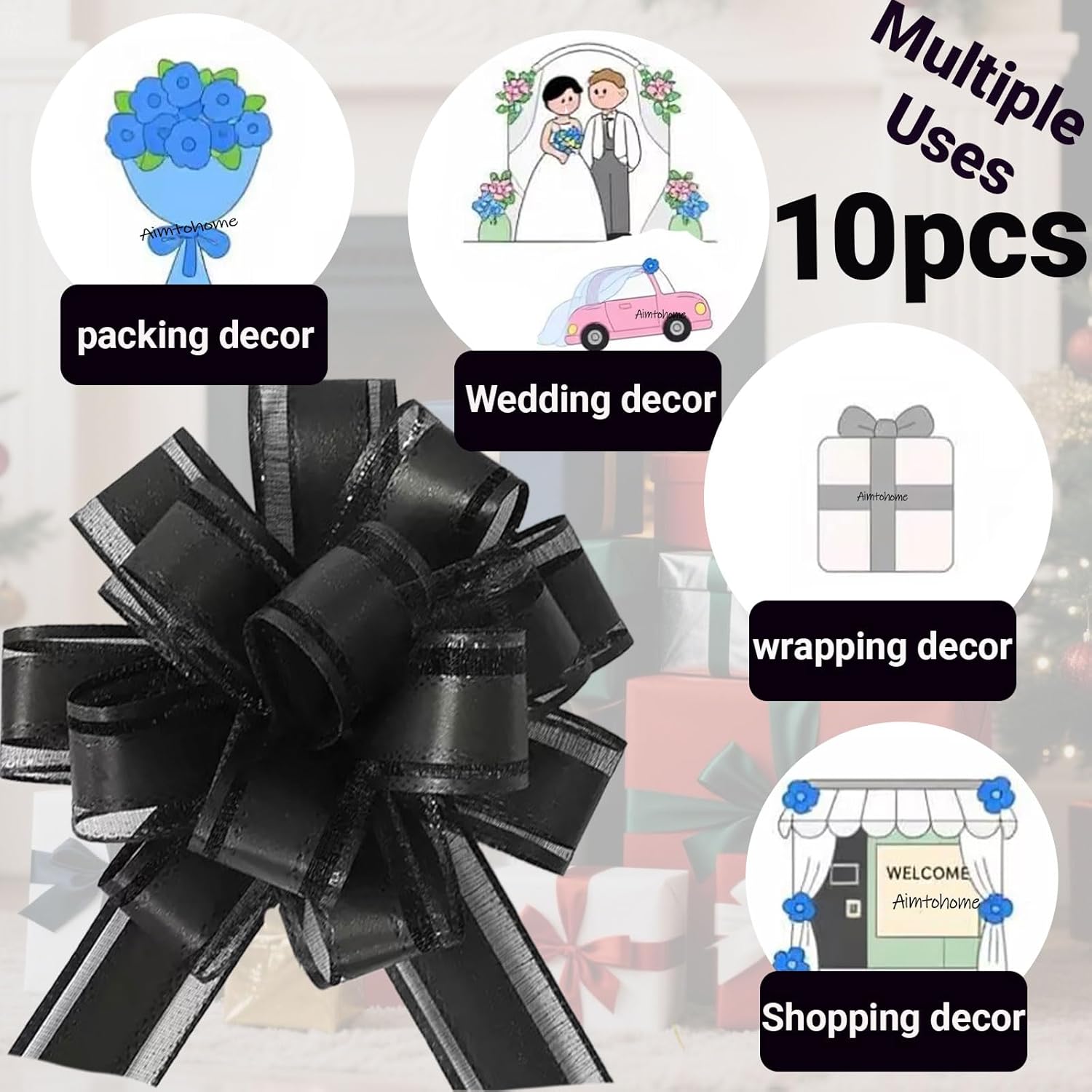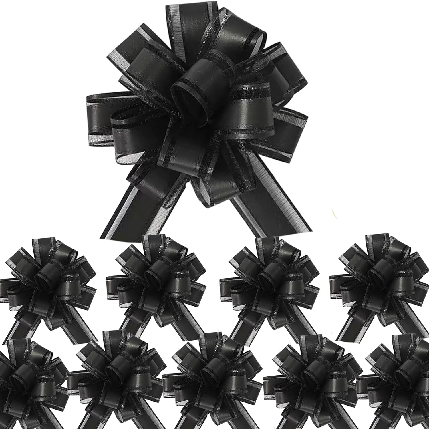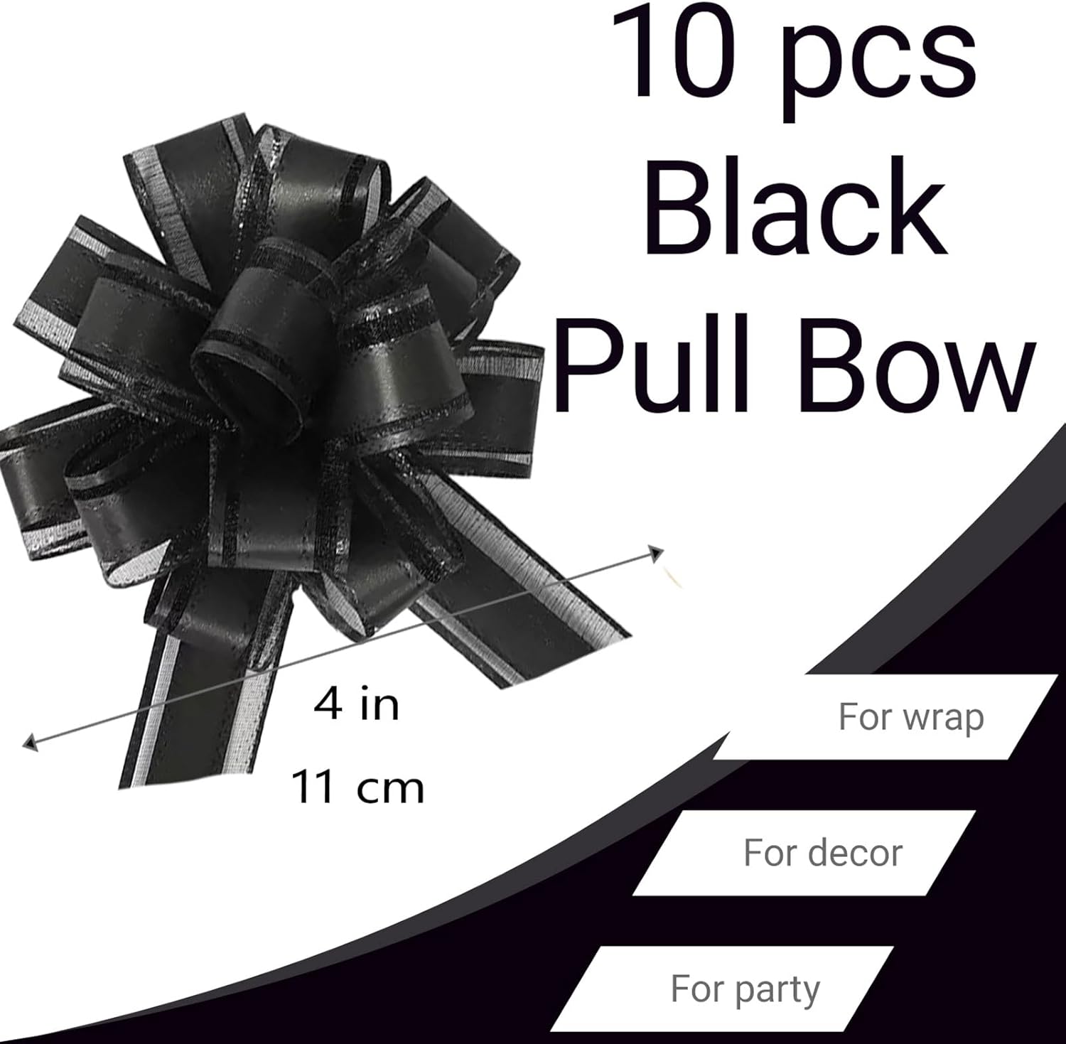 - PULL BOWS PACKAGE CONTENTS: Set of 10 elegant Black pull bows, each measuring 4 inches in diameter when fully assembled - perfect for gift wrapping and decorations