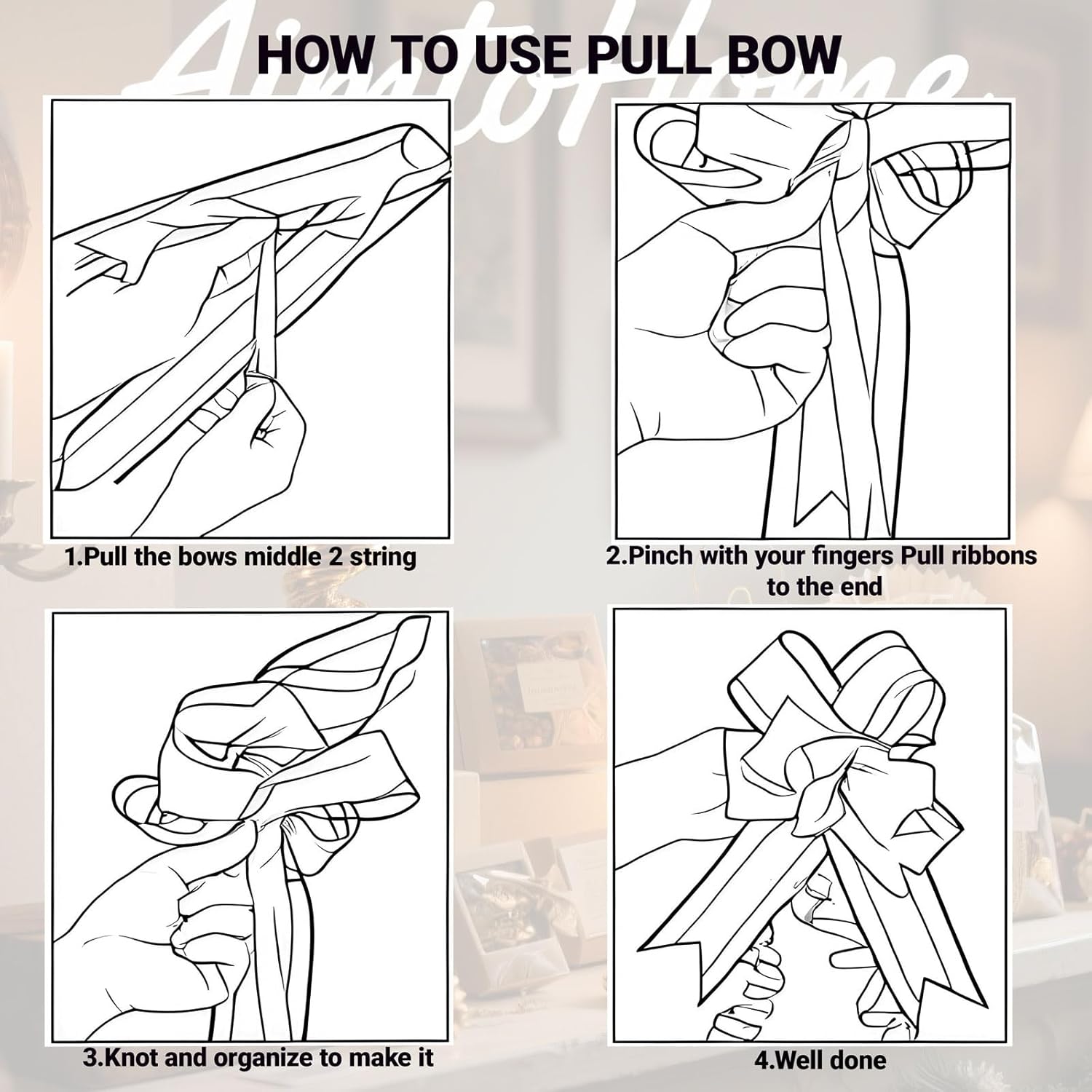 - GIFT BOWS EASY ASSEMBLY: Simple 4-step process to create beautiful bows - locate strings, pull drawstrings, secure with knot, and arrange into final shape