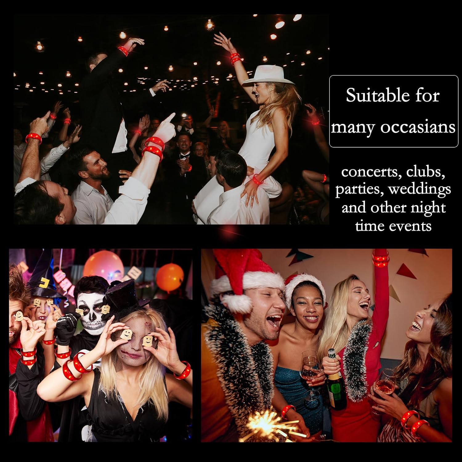- Perfect for Any Occasion: These LED light-up bracelets are ideal for a wide range of events! Use them for concerts, festivals, celebrations, carnivals, raves, birthday parties, Halloween treat bags, Christmas festivities, and New Yearโs Eve parties!